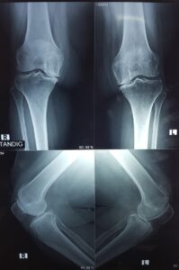 In a normal joint, articular cartilage allows for smooth movement within the joint, whereas in an arthritic knee the cartilage itself becomes thinner or completely absent. In addition, the bones become thicker around the edges of the joint and may form bony “spurs”. All of these factors can cause pain and restricted range of motion in the joint.
